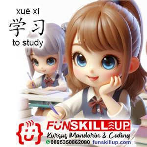 Cara Menulis hanzi Mandarin 学习 xuéxí (belajar)